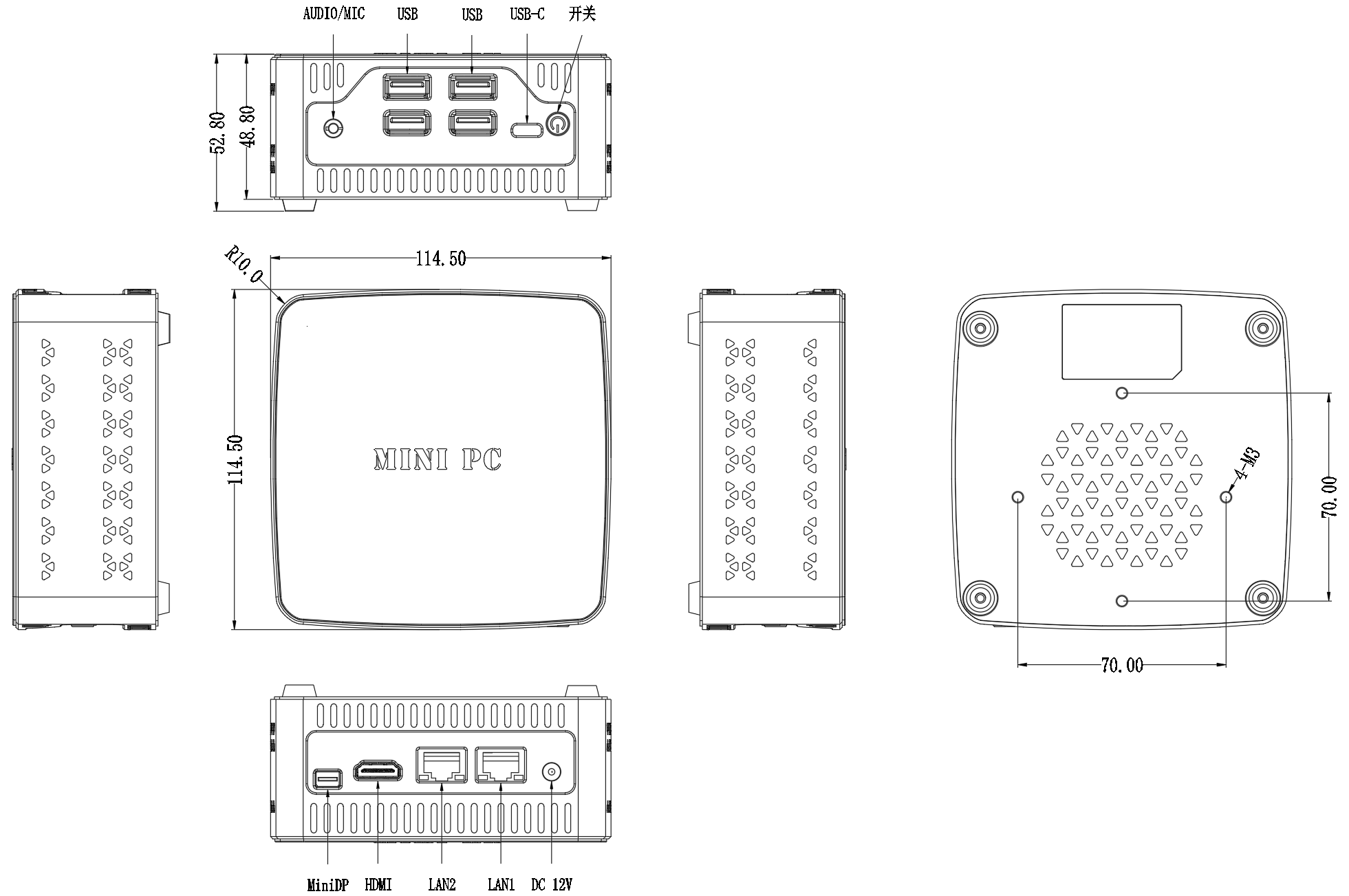 ◆ 尺寸:114.5x114.5x52.8mm
