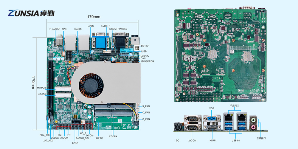 存儲方面有1個mSATA和1個SATA3.0接口,顯示方面有1個HDMI、1個VGA和1個LVDS/eDP(2選1)接口;豐富的工業接口,有PCIe X16、MiniPCIe、LAN、COM、GPIO、CAN等。可以連接各種電力設備,如傳感器、控制器、數據采集設備等,實現對電力設備的監測與控制、存儲采集到的電力數據,以便后續分析和處理。